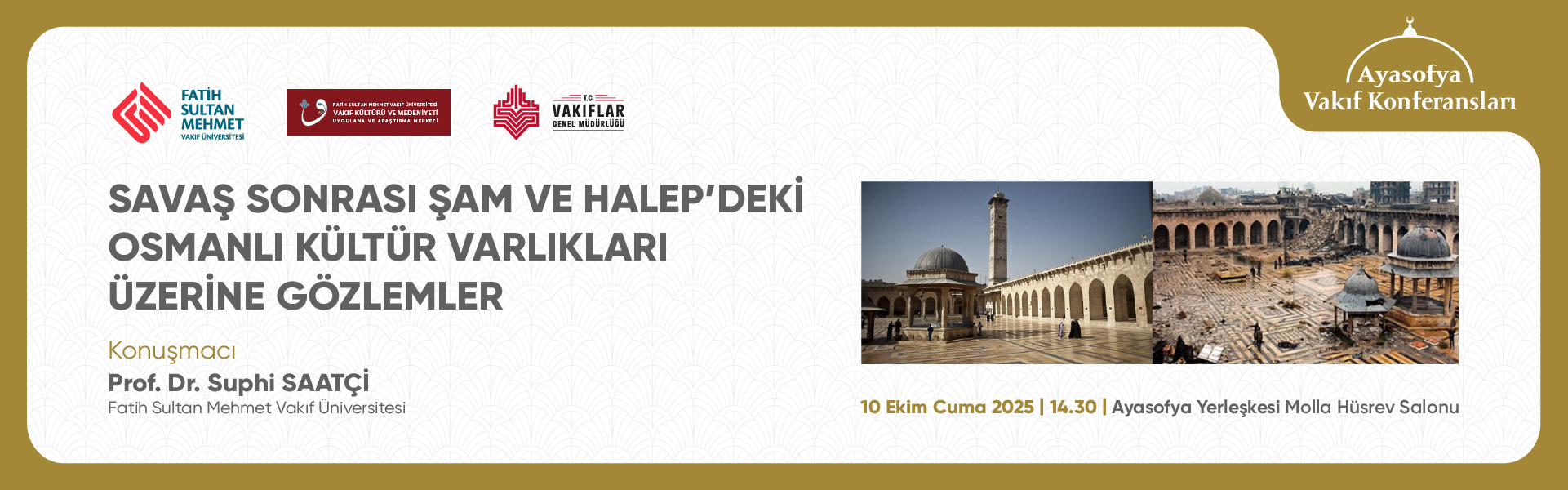 FSMVÜ Vakıf Kültürü ve Medeniyeti Uygulama ve Araştırma Merkezi ile Vakıflar Genel Müdürlüğü’nün düzenlediği konferansta Prof. Dr. Suphi Saatçi, Şam ve Halep’teki Osmanlı kültür varlıklarının savaş sonrası durumunu ve korunma çalışmalarını anlattı.
