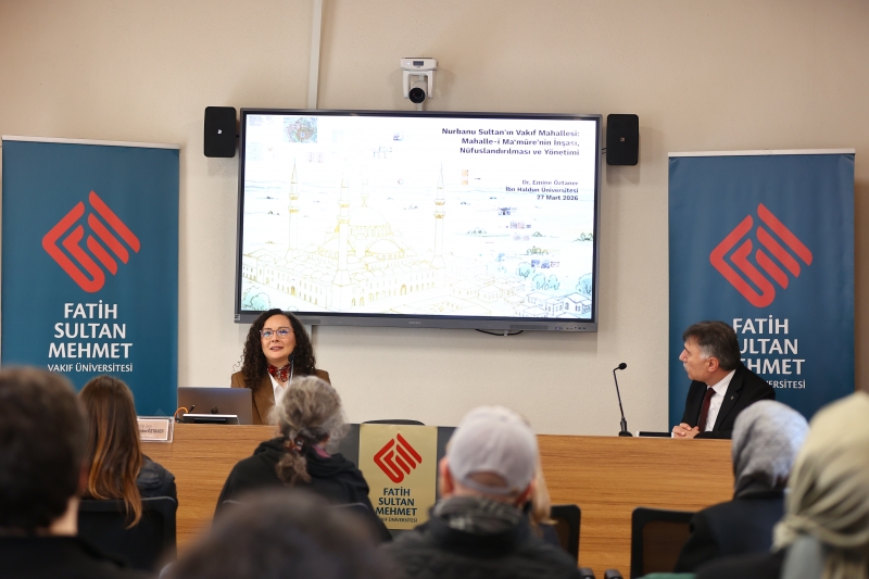 FSMVÜ Vakıf Kültürü ve Medeniyeti Uygulama ve Araştırma Merkezi tarafından düzenlenen Ayasofya Tez Sunumları başlıklı programın ilk konuğu Dr. Öğr. Üyesi Emine ÖZTANER, “Nur Banu Sultan'ın Üsküdar'daki Vakıf Mahallesi: Mahalli-i Ma‘mure’nin İnşası, Nüfuslandırılması ve Yönetimi (16 ve 17 yüzyıllar)” başlıklı sunumunu gerçekleştirdi.